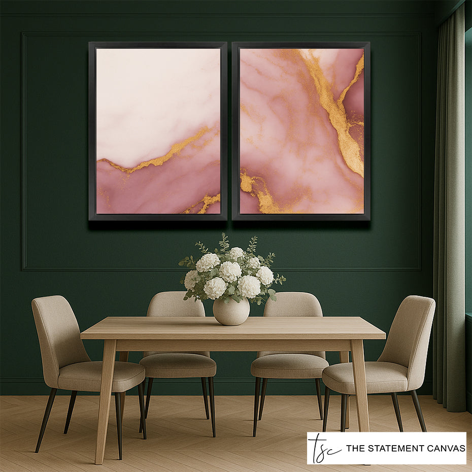 “Opulent Flow” is a captivating abstract artwork that weaves together soft blush tones and radiant gold veining, evoking the luxurious movement of liquid marble and the harmony of organic elegance.